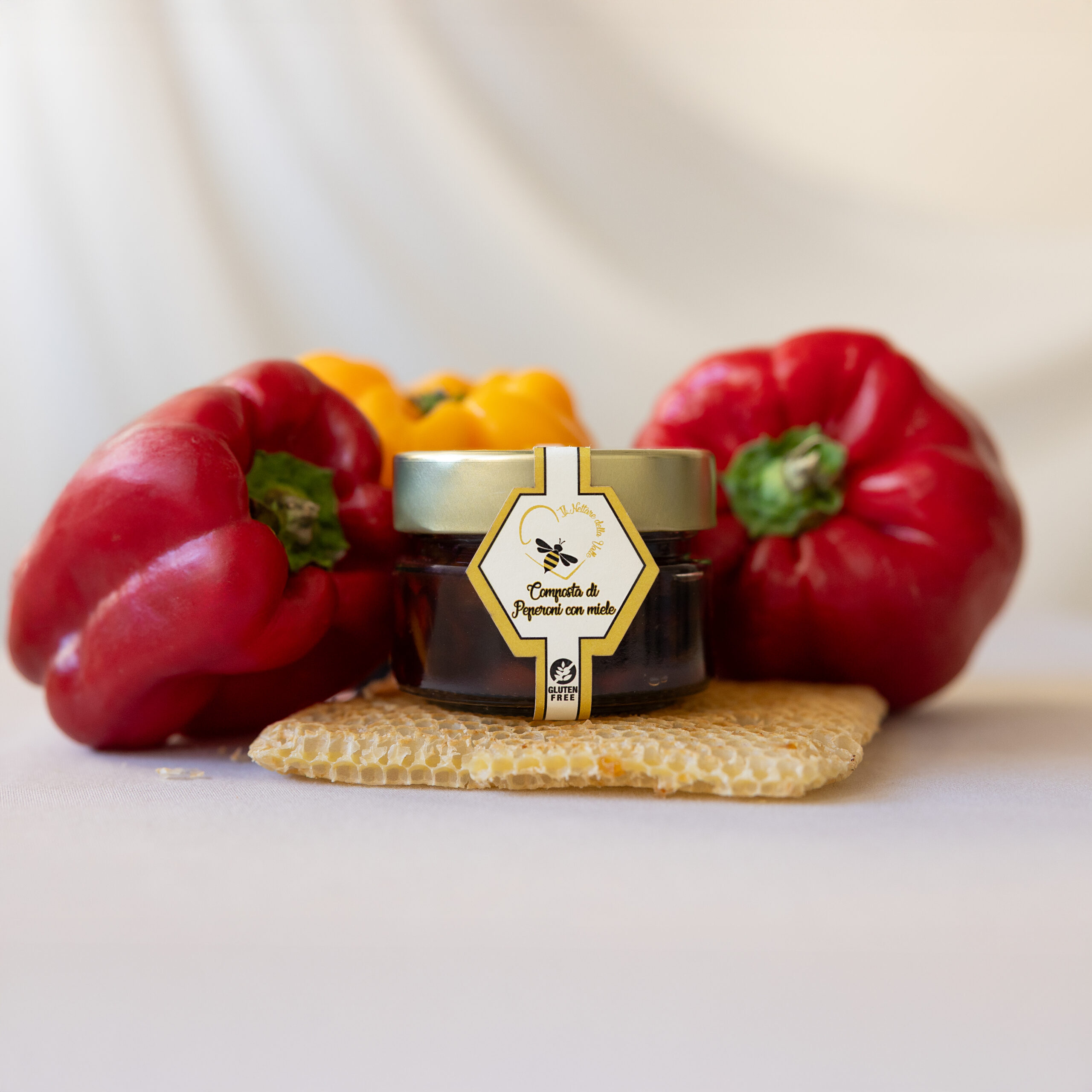 Un sodalizio perfetto tra la dolcezza naturale del miele e la vivace nota dei peperoni, trasformato in una composta straordinaria. Ogni cucchiaio racchiude equilibrio, armonia e raffinatezza, offrendo un’esperienza sensoriale che sorprende al primo assaggio.