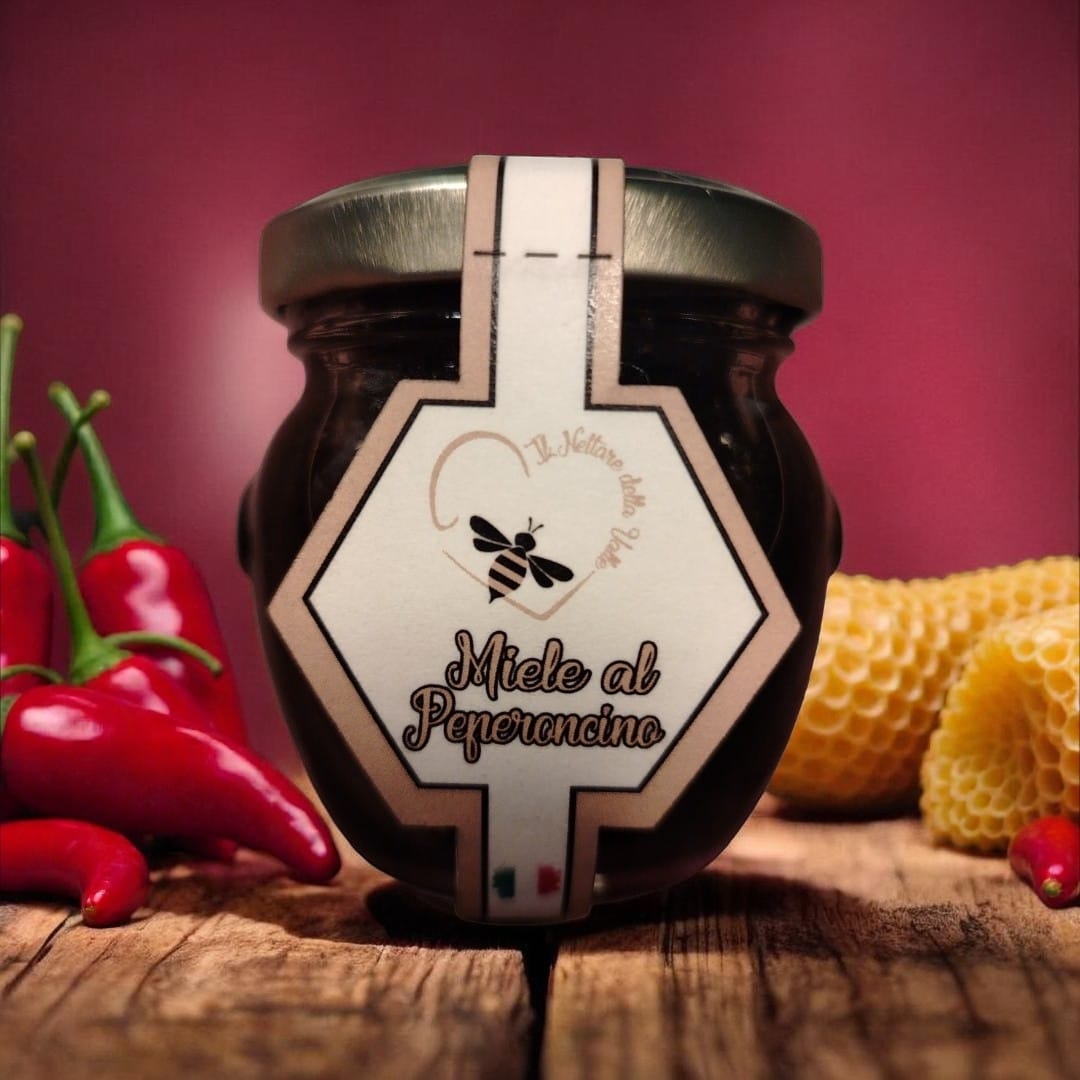 Un miele artigianale al peperoncino che unisce la dolcezza vellutata del miele a una nota piccante elegante e sorprendente. Dal gusto equilibrato e deciso, è ideale per accompagnare formaggi, salumi e piatti gourmet, regalando un’esperienza intensa e originale.